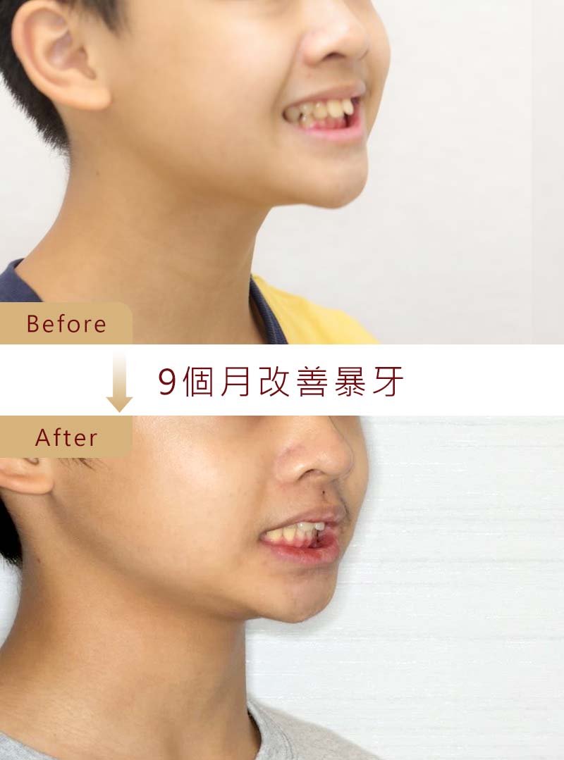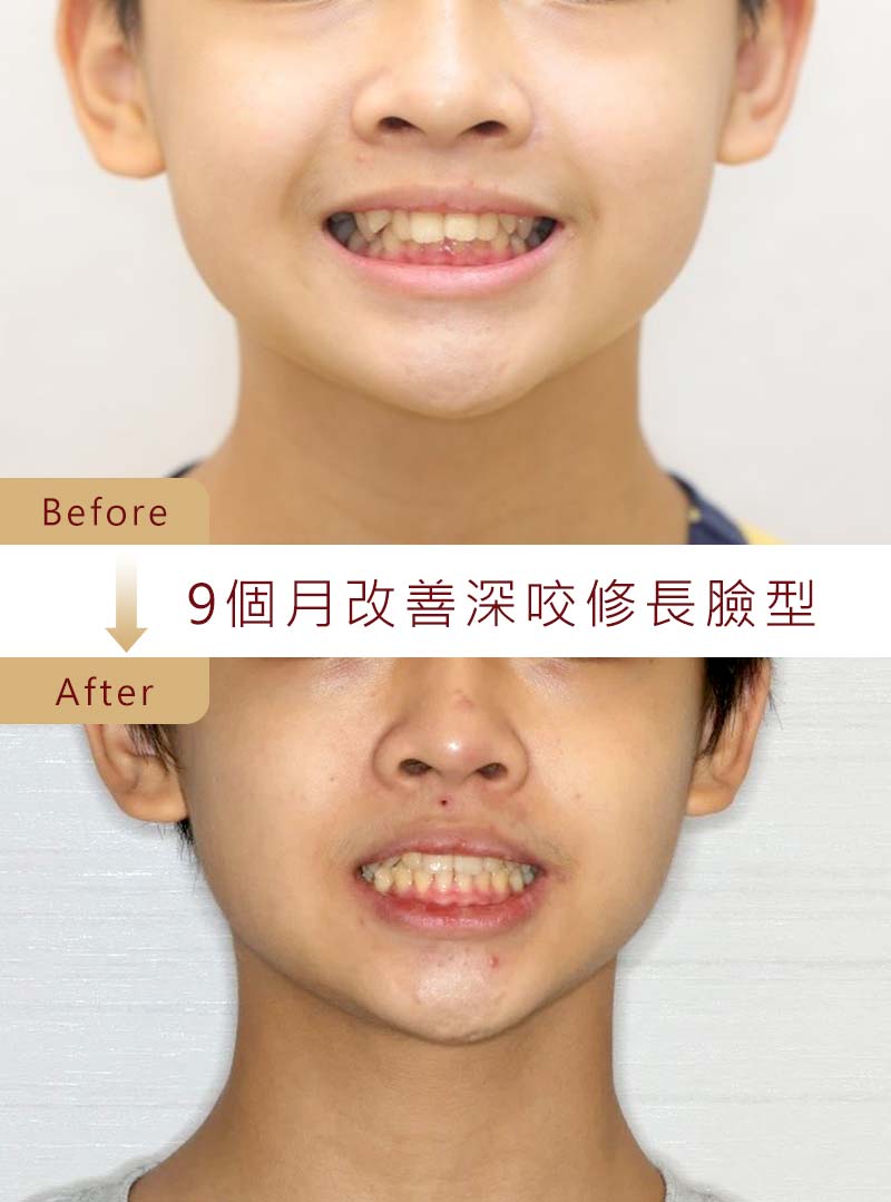 身為父母最擔心的除了小孩的教育問題,應該就是希望長大後能有姣好的外觀。但是,讓小朋友矯正又擔心過程不舒服、疼痛、無法好好吃飯、清潔不當造成一堆蛀牙,光是想到這些就讓人怯步。隱適美矯正克服以上種種問題,搭配兆品美學的光速矯正計畫,無須拔牙、幾乎沒有疼痛感、盡情享用美食、長高長壯。原先因為深咬及暴牙的臉型,居然這麼快就變成小小帥型男,連媽媽都要覺得不可思議了。