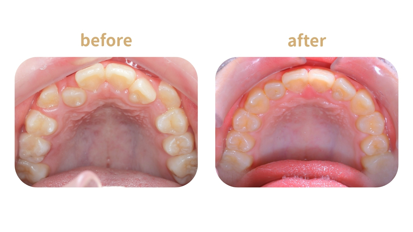 可以看到牙弓變寬、牙齒漸漸排整齊,連咬合關係都自然調整了!