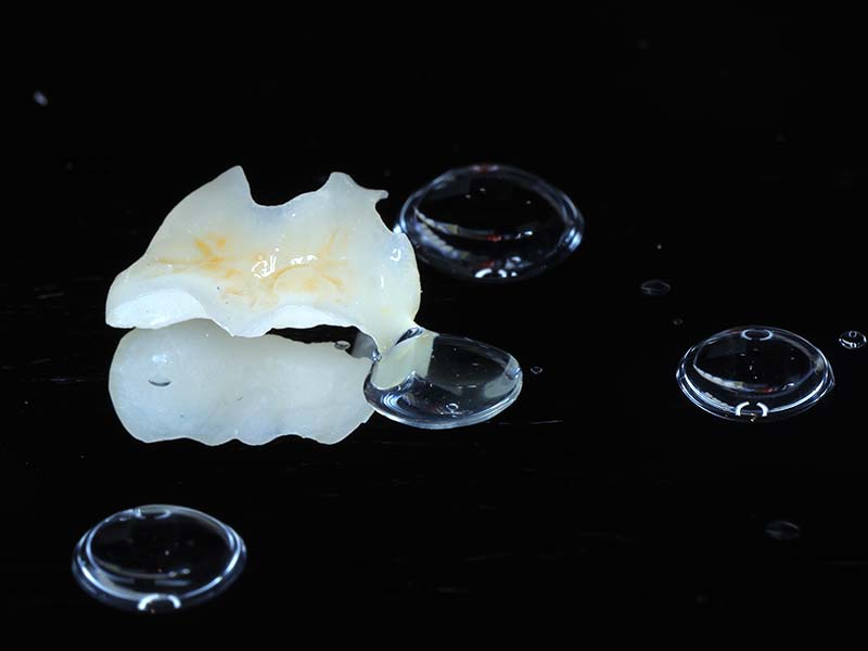 瓷塊硬度高,接近真牙珐瑯質的硬度,且由於力學結構經過精準設計,承受咬合力佳,黏著與抗磨耗性也非常好,不會有樹脂補了又掉,掉了又得補的情況,且每次都越補範圍越大。